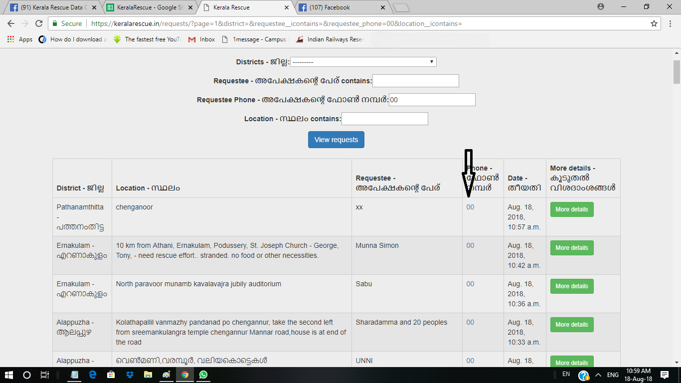 അത്തരത്തില് ഒരു ഗുരുതരമായ പിഴവോടു കൂടിയാണ് കേരള സര്ക്കാര് പ്രളയത്തില് മുങ്ങിത്താഴുന്ന ജനങ്ങളുടെ മുന്നിലേക്ക് റെസ്ക്യൂ സൈറ്റെന്ന ഈ കച്ചിത്തുരുമ്പ് ഇട്ടു കൊടുത്തത്. ഈ സംവിധാനത്തില് സഹായം അഭ്യര്ഥിക്കുന്നവരുടെ ഫോണ് നമ്പര് രേഖപ്പെടുത്താന് ഒരു കോളം ഉണ്ട്. രെജിസ്റ്റര് ചെയ്ത കേസുകളുടെ ഡേറ്റാ ബേസ് അന്ന് തുറന്നു നോക്കിയവര് ഞെട്ടിത്തരിച്ചിരിക്കും. കാരണം മരണത്തെ മുഖാമുഖം കാണുന്ന ഗുരുതരമായ ഒരു സ്ഥിതി വിശേഷത്തിനു നടുവില് നിന്നു കൊണ്ട് ഈ അഭ്യര്ത്ഥന രെജിസ്റ്റര് ചെയ്ത പലരുടേയും ഫോണ് നമ്പരുകളില് ഒമ്പതക്കം മാത്രമേ രേഖപ്പെടുത്തിയിട്ടുള്ളൂ !