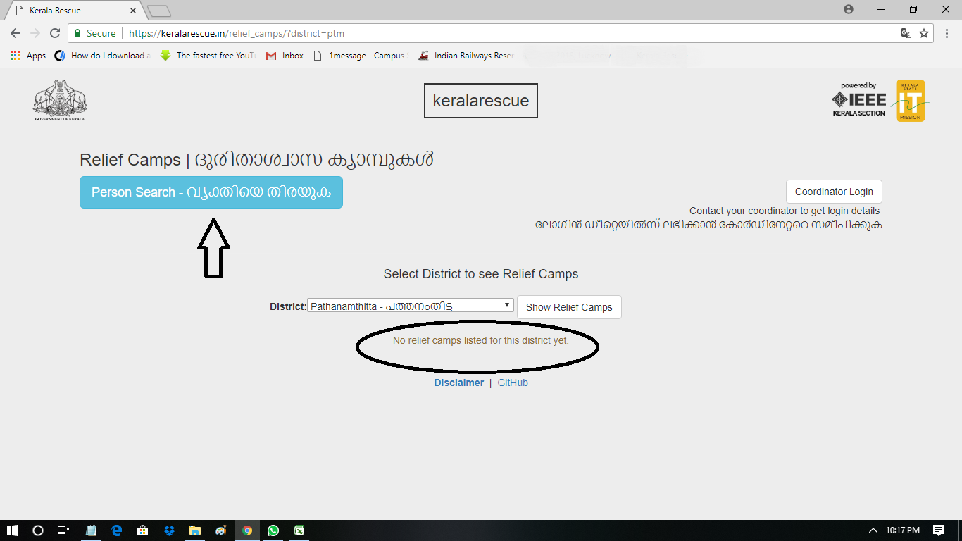 പ്രളയത്തിന്റെ ആദ്യ ദിവസം മുതല് തന്നെ കാണാതായവരെ അന്വേഷിച്ചുള്ള സോഷ്യല് മീഡിയ സന്ദേശങ്ങള് കിട്ടാന് തുടങ്ങിയിരുന്നു. വിദേശങ്ങളിലും മറ്റുമുള്ളവര്ക്ക് നെറ്റ് വര്ക്ക് കിട്ടാത്ത ബന്ധുക്കളുടെ വിവരങ്ങള് അറിയാന് ഒരു വഴിയും ഉണ്ടായിരുന്നില്ല. ഏതെങ്കിലും ക്യാമ്പുകളിലോ ആശുപത്രികളിലോ അവര് എത്തിപ്പെട്ടോ എന്നറിയാതെ ആളുകള് പരക്കം പാഞ്ഞു. ലൈവ് വീഡിയോകള് ഇട്ട് ഹൃദയം പൊട്ടി കരഞ്ഞു. സര്ക്കാര് വെബ് സൈറ്റില് ക്യാമ്പുകളിലെ ആളുകളെ തിരയാനുള്ള സംവിധാനം ഉണ്ടായിരുന്നു. ഫേസ്ബുക്കില് വന്ന ഒരു സുഹൃത്തിന്റെ കാര്യം അന്വേഷിക്കാന് ഞാന് വീണ്ടും ഈ സൈറ്റില് കയറി.