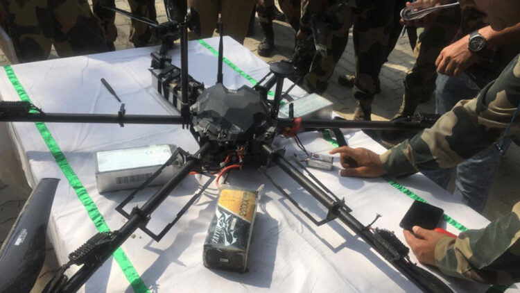 ഡ്രോണില് നിന്നും ആയുധങ്ങളും കണ്ടെടുത്തിട്ടുണ്ട്. ഒരു എം 4 യുഎസ് നിര്മ്മിത തോക്ക്, രണ്ട് മാഗസീനുകള്, 60 റൗണ്ട വെടിയുണ്ടകള് , ഏഴ് ഗ്രനേഡുകള് എന്നിവയാണ് ഡ്രോണില് നിന്നും കണ്ടെടുത്തത്.