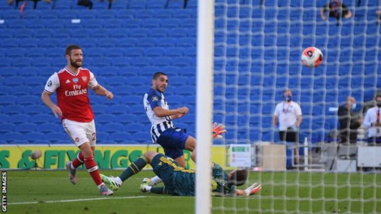 ശക്തമായ പ്രതിരോധത്തിലൂന്നി കളിച്ച ബ്രൈറ്റണ്‍ ആഴ്‌സണലിന് ആദ്യപകുതിയില്‍ ഗോളടിക്കാന്‍ ഒരു അവസരവും നല്‍കിയില്ല. രണ്ടാം പകുതിയില്‍ പക്ഷെ ഉണര്‍ന്നുകളിച്ച ആഴ്‌സണല്‍ സൂപ്പര്‍താരം പെപ്പേയിലൂടെ മുന്നിലെത്തി. 68-ാം മിനിറ്റിലാണ് ആഴ്‌സണലിന്റെ ഏക ഗോള്‍ പിറന്നത്. എന്നാല്‍ 75-ാം മിനിറ്റില്‍ ദിനം ആഴ്‌സണലിനൊപ്പമല്ല എന്ന് പ്രഖ്യാപി ക്കുന്ന മറുപടി ഗോള്‍ പിറന്നു. ബ്രൈറ്റണിനായി ലൂയിസ് ഡങ്കാണ് ഗോളടിച്ചത്. തുടര്‍ന്ന് വിജയഗോളിനായി നടത്തിയ ആഴ്‌സണലിന്റെ ശ്രമങ്ങളൊന്നും ഫലം കണ്ടില്ല. ഇതിനിടെ കളിയുടെ അവസാന നിമിഷങ്ങളിലെ അധികസമയത്ത് മൗപേയാണ് ആഴ്‌സണലിന്റെ പ്രതീക്ഷകള്‍ക്ക് നേരെ ഗോളടിച്ചത്. 95-ാം മിനിറ്റിലാണ് ബ്രൈറ്റണിന്റെ വിജയഗോള്‍ പിറന്നത്. ഇതോടെ നിലവിലില്‍ 10-ാം സ്ഥാനത്ത് നിന്നും മുന്നേറാനുള്ള ആഴ്‌സണലിന്റെ ശ്രമമാണ് തടയപ്പെട്ടത്.