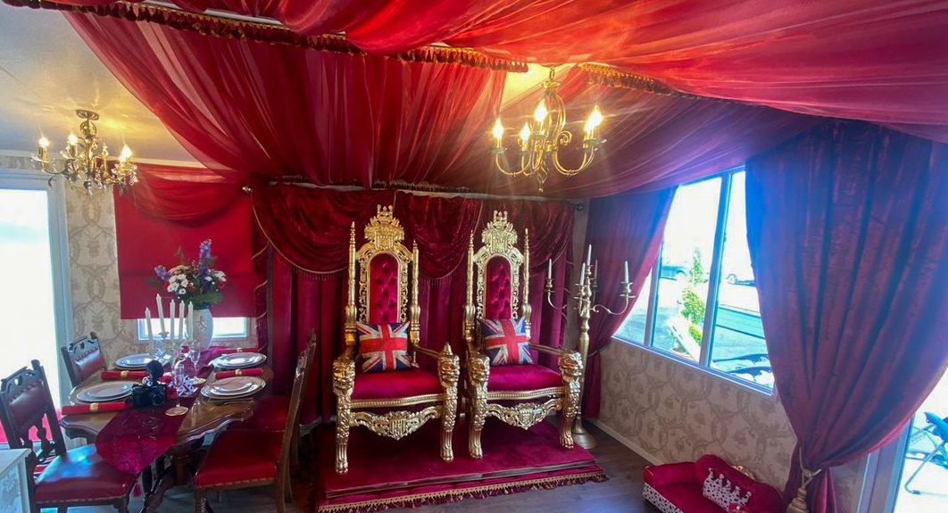 കൊട്ടാരത്തിൽ എത്തുമ്പോൾ തന്നെ ലഭിക്കുന്ന രാജകീയമായ പാനീയവും വൈകുന്നേരങ്ങളിൽ മട്ടുപ്പാവിൽ ഇരുന്ന് കഴിക്കാനുള്ള ഷാംപെയിനുമായി ഈ കാരവൻ കൊട്ടാരം പുതിയ രാജ്ഞിക്കും രാജാവിനും വേണ്ടി ഓരോ ദിവസവും കാത്തിരിക്കുകയാണ്.