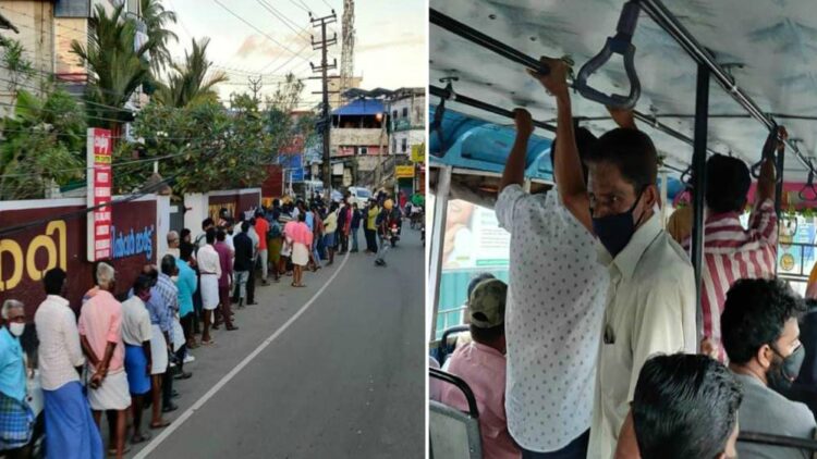 സംസ്ഥാനത്ത് സ്ഥിതി അതി രൂക്ഷമായി കൊണ്ടിരിക്കുന്നു. പതിനായിരം കടന്ന് കൊറോണ കേസുകള്. എന്നിട്ടും പഠിക്കാതെ അല്ലെങ്കില് കാര്യത്തിന്റെ ഗൗരവം മനസ്സിലാക്കാതെ ജനങ്ങള്. കോഴിക്കോട്, തിരുവനന്തപുരം, മലപ്പുറം, എറണാകുളം എന്നീ ജില്ലകളിലെ മിക്ക ദിവസങ്ങളിലും ആയിരത്തിന് മുകളിലാണ് കേസുകള്. കൊറോണ വ്യാപനം അതി രൂക്ഷമായ പശ്ചാത്തലത്തില് സംസ്ഥാനത്ത് നിരോധനാജ്ഞ പ്രഖ്യാപിച്ചു (144). എന്നാല് ബസ്സിലെ യാത്രക്കാരുടെ തിരക്ക്, ബീവറേജിനു മുന്നിലെ നീണ്ട ക്യൂ, മാളുകളിലെ ആള്കൂട്ടം തുടങ്ങിയവ കാണുമ്പോള് നിരോധനാജ്ഞ പ്രഖ്യാപിച്ചത് പോലും ജനങ്ങള് അറിഞ്ഞിട്ടില്ലെന്ന് തോന്നിപ്പോകും.