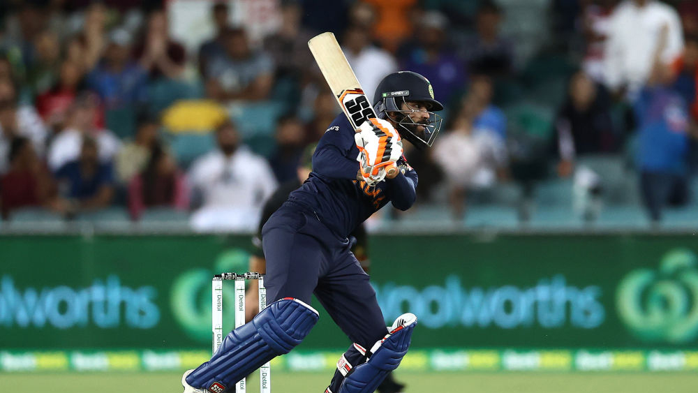 കാന്‍ബെറ: ഓസ്ട്രേലിയക്കെതിരായ ആദ്യ ടി20യില്‍ അവസാന ഓവറുകളില്‍ ആഞ്ഞടിച്ച ജഡേജയുടെ മികവില്‍ ഇന്ത്യയ്‌ക്ക് ഭേദപ്പെട്ട സ്കോർ. നിശ്ചിത 20 ഓവറിൽ ഇന്ത്യ 7 വിക്കറ്റ് നഷ്ടത്തിൽ 161 റൺസെടുത്തു. 23 പന്തില്‍ ഒരു സിക്‌സറും 5 ബൗണ്ടറികളുമടക്കം 44 റണ്‍സുമായി ജഡേജ പുറത്താകാതെ നിന്നു.
