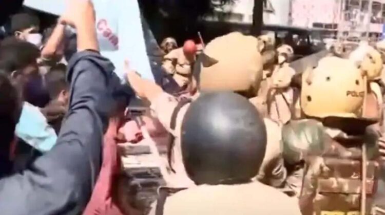 റൌഫിൻറെ അറസ്റ്റ്, പ്രകോപനം സൃഷ്ടിച്ച് ക്യാമ്പസ് ഫ്രണ്ട് മാർച്ച്, പ്രവർത്തകരെ പോലീസ് ഓടിച്ചിട്ട് തല്ലി