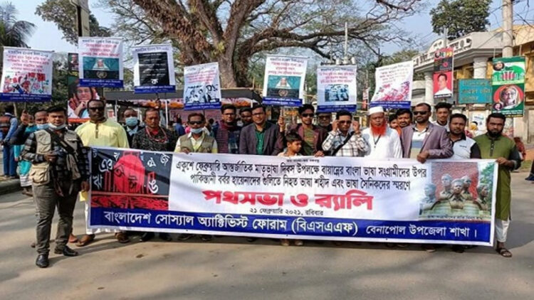 പാക് അധിനിവേശ സേനകൾ ബംഗ്ലാദേശിന്റെ സ്വാതന്ത്ര്യ സമരത്തേയും ഭാഷയേയും അടിച്ചമർത്തിയതിന്റെ പ്രതിഷേധ സ്മരണയാണ് ഉയർന്നത്. പാകിസ്താനെതിരെ പോരാടി വീരമൃത്യുവരിച്ച ബംഗ്ലാദേശ് ജവാന്മാരേയും സ്വാതന്ത്ര്യസമര ഭടന്മാരേയും പ്രതിഷേധപരിപാടിയിൽ അനുസ്മരിച്ചു. തലസ്ഥാന നഗരമായ ധാക്കയിലും വിവിധ സംസ്ഥാന കേന്ദ്രങ്ങളിലും പരിപാടികൾ സംഘടിപ്പിക്കപ്പെട്ടു. ബംഗ്ലാദേശ് സോഷ്യൽ ആക്ടിവിസ്റ്റ് ഫോറത്തിന്റെ ആഭിമുഖ്യത്തിലാണ് പരിപാടികൾ സംഘടിപ്പിക്കപ്പെട്ടത്.