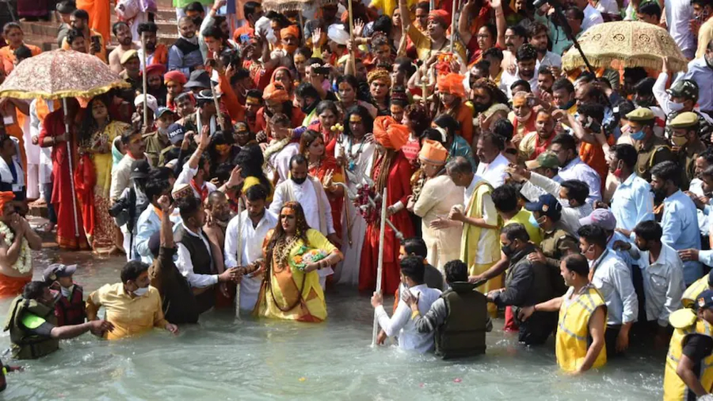 കൊറോണയുടെ പശ്ചാത്തലത്തിൽ കുംഭമേള ആരംഭിക്കുംമുന്നേ ഹരിദ്വാറിലെത്തി സ്‌നാനം നടത്തി മടങ്ങുന്നവരാണ് ഇത്തവ കൂടുതലെത്തുന്നത് . ഹരിദ്വാറിലെത്തിയ ഭക്തജനങ്ങളെ സംസ്ഥാന ഭരണകൂടം ഹെലികോപ്റ്ററിലൂടെ പുഷ്പവൃഷ്ടി നടത്തിയാണ് സ്വീകരിച്ചത്. ഏപ്രിൽ ഒന്നിനാണ് കുംഭമേള ആരംഭിക്കുന്നത്. അതിനു മുൻപായി നടക്കുന്ന മഹാശിവരാത്രി ദിനത്തിൽ ഗംഗാ സ്നാനം നടത്തുന്നത് വളരെ പവിത്രമായാണ് ഭക്തർ കണക്കാക്കുന്നത്. കൊറോണയുടെ സാഹചര്യം കണക്കിലെടുത്ത് കുംഭമേള ചടങ്ങുകൾ 30 ദിവസം കൊണ്ട് പൂർത്തിയാക്കാനാണ് തീരുമാനം. ആദ്ധ്യാത്മിക തീർത്ഥാടനത്തിന്റെ ഭാഗമായി ഹരിദ്വാറിൽ ഈ വർഷം നാല് ഷാഹി സ്‌നാനവും ഒൻപത് ഗംഗാ സ്‌നാനവും നടക്കും.