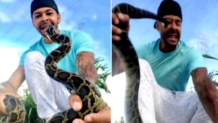 നിക്ക് ബിഷപ്പിന്റെ വീഡിയോയും അതോടൊപ്പം ഈ യുവാവിനെ കുറിച്ചുള്ള വാര്ത്തകളും ഇപ്പോള് സോഷ്യല് മീഡിയയില് വൈറലായി കൊണ്ടിരിക്കുകയാണ്. 1980 ലാണ് എവര്ഗ്ലേഡില് ബര്മീസ് പൈതണലിനെ ആദ്യമായി കണ്ടെത്തിയത്. ഉടമസ്ഥര് വളര്ത്താനായി കൊണ്ടു വന്ന പെരുമ്പാമ്പുകളെ ഉപേക്ഷിച്ചു. ഇതാണ് ഈ വനത്തില് എത്താന് കാരണമായത്. 1992 ആയപ്പോഴേക്കും ഇവ പെറ്റുപെരുകി. കൂടാതെ ആ പ്രദേശത്ത് കണ്ടുവന്നിരുന്ന ചെറുജീവികളെയെല്ലാം ഇവ കൊന്നൊടുക്കി.