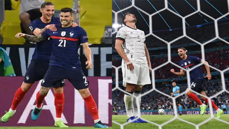 പാരീസ്: യൂറോകപ്പിലെ സൂപ്പർ പോരാട്ടത്തിൽ ഫ്രാൻസിന് ജയം. സെൽഫ് ഗോൾ പിഴവു വരുത്തിയ ജർമ്മനിയാണ് ഏക ഗോളിന്റെ വിജയം നീലപ്പടയ്‌ക്ക് സമ്മാനിച്ചത്.