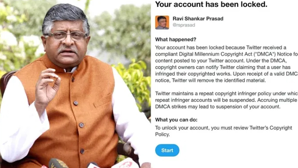 കേന്ദ്രമന്ത്രി രവിശങ്കർ പ്രസാദിനെ ബ്ലോക്ക് ചെയ്ത് ട്വിറ്റർ: ഒരു മണിക്കൂർ നേരത്തേയ്‌ക്ക് ഉപയോഗിക്കാനായില്ലെന്ന് മന്ത്രി
