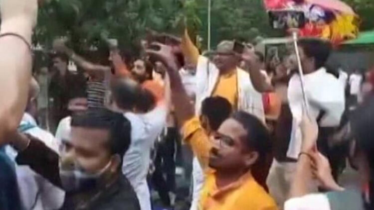 രാമമന്ത്രം മുഴക്കിയായിരുന്നു ബിജെപി പ്രവർത്തകരുടെ പ്രതിഷേധം. ഇതിനിടെ ഇന്ത്യയിൽ ജീവിക്കണമെങ്കിൽ മുസ്ലീങ്ങൾ ജയ് ശ്രീരാം വിളിക്കണമെന്ന് പ്രവർത്തകർ മുദ്രാവാക്യം മുഴക്കിയെന്നാണ് പോലീസ് ആരോപിക്കുന്നത്. ഇതിന് പുറമേ കൊറോണ സുരക്ഷാ മാനദണ്ഡങ്ങൾ പാലിക്കാതെയാണ് പ്രവർത്തകർ ഒത്തുകൂടിയതെന്നും പോലീസ് പറഞ്ഞു.