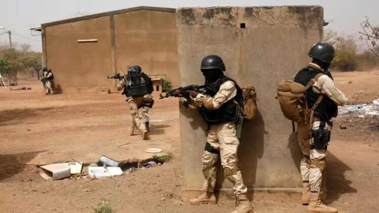 മാലിയുമായി അതിർത്തി പങ്കിടുന്ന ബുർക്കിനോ ഫസോയിലെ ഒരു ഗ്രാമത്തിലാണ് സൈന്യം തിരച്ചിൽ നടത്തിയത്. തുയേനി സമൂഹം അധിവസിക്കുന്ന മേഖലയിലാണ് ഭീകരർ തമ്പടിച്ചത്. രണ്ടാഴ്ച മുന്നേ പ്രമുഖ ഭീകരസംഘടനകളുടെ രണ്ട് നേതാക്കളെ സൈന്യം ഇതേ മേഖലയിൽ വകവരുത്തിയിരുന്നു. ഇതിന്റെ പ്രതികാരമായിട്ടാണ് ഭീകരർ സൈനികരെ ആക്രമിച്ചത്.