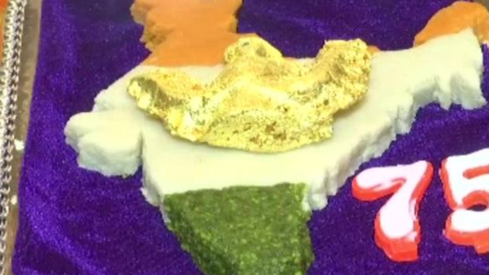 75 -ാമത് സ്വാതന്ത്ര്യദിനം ആഘോഷിക്കുന്ന രാജ്യത്തിനുളള ഉപഹാരമാണ് ഞങ്ങളുടെ മധുരപലഹാരങ്ങളിൽ അടങ്ങിയിരിക്കുന്നത്. ഇന്ത്യയുടെ ഭൂപടത്തിന്റെ ആകൃതിയിൽ തീർത്ത പലഹാരത്തിൽ പുരാതന ഭാരതത്തിന്റെ സമൃദ്ധിയെ സൂചിപ്പിക്കാൻ സ്വർണ്ണക്കുരുവിയെയും ചേർത്തിട്ടുണ്ട്.