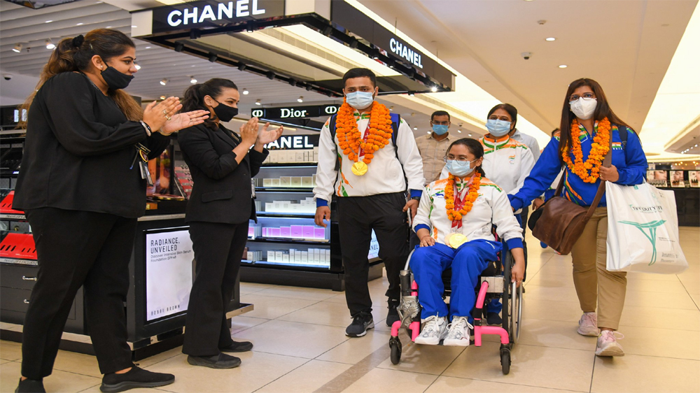 ന്യൂഡൽഹി: ടോക്കിയോ പാരാലിമ്പിക്സിൽ മാറ്റുരച്ച ഇന്ത്യയുടെ മിന്നും താരങ്ങൾക്ക് ഗംഭീര വരവേൽപ്പ് നൽകി രാജ്യം. ഹർഷാരവങ്ങളോടെയാണ് ജനം താരങ്ങളെ സ്വീകരിച്ചത്. ഇന്ത്യയുടെ സ്വർണതാരങ്ങളായ അവനി ലെഖേറ, പ്രമോദ് ഭഗത് കൃഷ്ണ നഗർ എന്നിവുൾപ്പെട്ട താരങ്ങളാണ് നാട്ടിൽ തിരിച്ചെത്തിയത്.