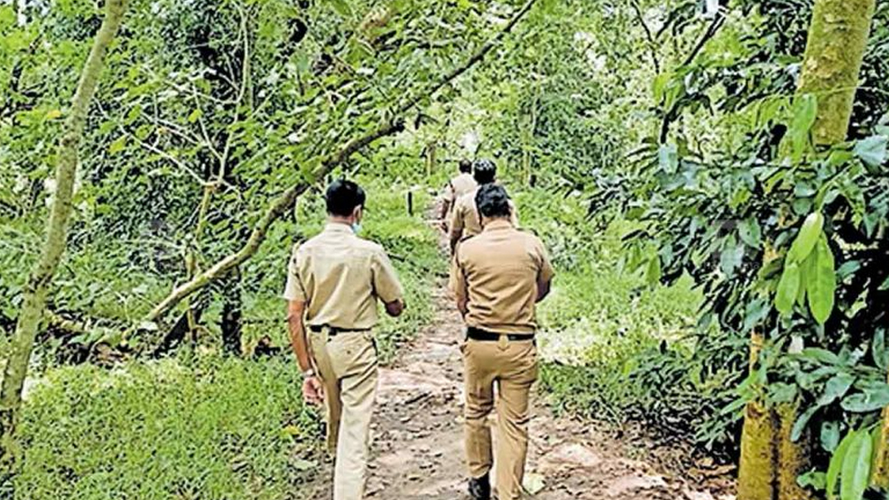 വടക്കേ അറ്റത്തെ ഹോളി ഗോസ്റ്റ് കടവു മുതൽ തെക്കുഭാഗത്തു ക്ഷേത്രഭൂമി വരെയുള്ള കാട്ടിലാണു പരിശോധന നടത്തിയത്. അകത്ത് ആളുകൾ ഉണ്ടെങ്കിൽ രക്ഷപ്പെടാതിരിക്കാൻ 2 വശവും വളഞ്ഞ ശേഷമാണ് 2 മണിക്കൂർ നീണ്ട പരിശോധന നടത്തിയത്.