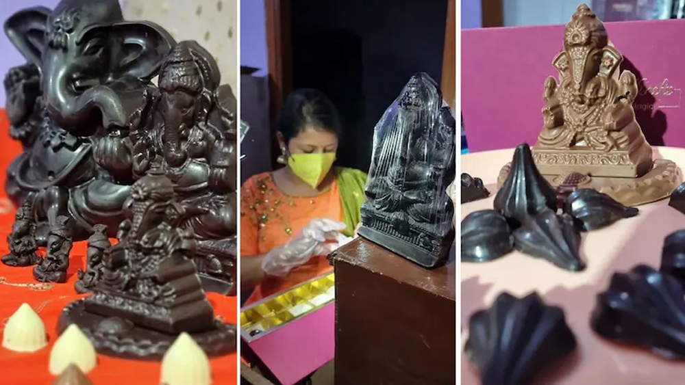 പൂജയ്ക്കായി ഒരുപാട് ആളുകളാണ് ചോക്ലേറ്റ് വിഗ്രഹങ്ങൾ വാങ്ങാനെത്തുന്നത്. പൂജയ്ക്ക് ശേഷം