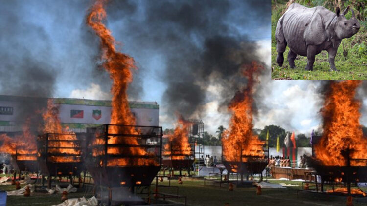ദിസ്പൂർ: ലോക കാണ്ടാമൃഗ ദിനത്തിൽ 2500ഓളം കാണ്ടാമൃഗ കൊമ്പുകൾ കത്തിച്ച് വ്യത്യസ്തമായ ചടങ്ങിന് സാക്ഷ്യം വഹിച്ചിരിക്കുകയാണ് ആസാം. മുഖ്യമന്ത്രി ഹിമന്ത ബിശ്വ ശർമയുടെ നേതൃത്വത്തിൽ കാസിരംഗ ദേശീയോദ്യാനത്തിലാണ് ചടങ്ങ് നടന്നത്. ആറ് വലിയ ഗ്യാസ് ഫർണസുകളിലായി കൃത്യം 2,479 കൊമ്പുകൾ പൊതുചടങ്ങിൽ കത്തിച്ചു. കാണ്ടാമൃഗ കൊമ്പുകളുമായി ബന്ധപ്പെട്ട് നിലനിൽക്കുന്ന മിത്തുകളെയും കൊമ്പുകൾക്കൊപ്പം ചാരമാക്കുകയെന്ന ഉദ്ദേശവും വ്യത്യസ്തമായ ഈ ചടങ്ങിനുണ്ടായിരുന്നു. പൊതുസ്ഥലത്ത് ചടങ്ങ് നടത്തുമെന്ന് കഴിഞ്ഞയാഴ്ച ആസാം സർക്കാർ പ്രഖ്യാംപിച്ചിരുന്നു്. ഇത്തരം വസ്തുക്കൾക്ക് യാതൊരു അടിസ്ഥാനവുമില്ലെന്ന് വേട്ടക്കാരെയും കള്ളക്കടത്തുകാരെയും ബോധ്യപ്പെടുത്തുക എന്ന ലക്ഷ്യവും ആസാം വനംവകുപ്പിനുണ്ടായിരുന്നു.