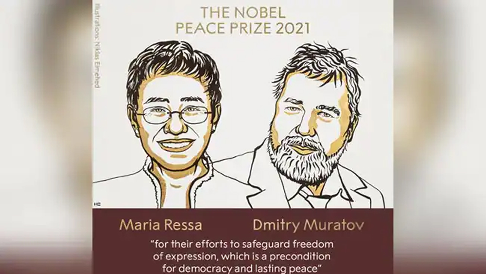 ഒസ്ലോ : സമാധാനത്തിനുള്ള ഈ വർഷത്തെ നെബേൽ പുരസ്കാരം മാദ്ധ്യമപ്രവർത്തകർക്ക്. ഫിലിപ്പൈൻസിലെ മാദ്ധ്യമ പ്രവർത്തകനായ മരിയ റെസ്സ, റഷ്യൻ മാദ്ധ്യമ പ്രവർത്തകനായ ദിമിത്രി മുറാതോവ് എന്നിവർക്കാണ് ഇത്തവണത്തെ പുരസ്കാരം ലഭിച്ചത്. രാജ്യങ്ങളിലെ അഭിപ്രായ സ്വാതന്ത്ര്യത്തിന് വേണ്ടി നടത്തിയ പോരാട്ടങ്ങളാണ് ഇവരെ നേട്ടത്തിനർഹരാക്കിയത്.