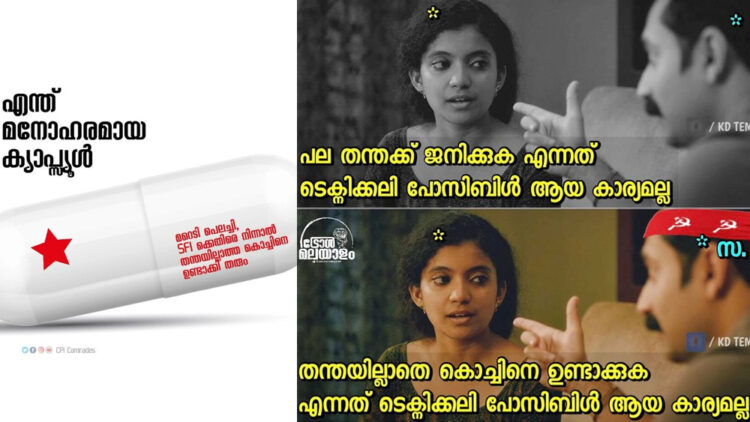 എഐഎസ്എഫ് വനിതാ നേതാവിന്റെ പരാതി പുറത്ത് വന്നതോടെയാണ് ജാതി അധിക്ഷേപം ഉൾപ്പെടെ ചർച്ചയായത്. എസ്എഫ്ഐയ്ക്ക് എതിരെ നിന്നാൽ നിനക്ക് തന്തയില്ലാത്ത കൊച്ചിനെ ഉണ്ടാക്കി തരുമെന്ന എസ്എഫ്ഐ നേതാവിന്റെ വെല്ലുവിളിയാണ് കൂടുതലും ട്രോളുകൾക്കുളള ക്യാപ്സൂളായത്.