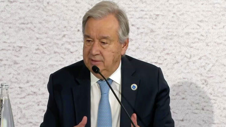 സ്കോട്ട്ലൻഡിലെ ഗ്ലാസ്ഗോയിൽ യുഎന്നിന്റെ കോപ് 26 കാലാവസ്ഥാ ഉച്ചകോടിയുടെ ഉദ്ഘാടന വേളയിലാണ് ഗുട്ടെറസിന്റെ ഈ പരാമർശം.ഫോസിൽ ഇന്ധനങ്ങളോടുള്ള മനുഷ്യന്റെ ആസക്തി മനുഷ്യകുലത്തെ നാശത്തിലേക്ക് തള്ളിവിടുകയാണ്.മുഴുവൻ മനുഷ്യ കുലത്തിന്റെയും ഭാവിക്ക് വേണ്ടി ഇതിന് തടയിടേണ്ട സമയം അതിക്രമിച്ചെന്ന് അദ്ദേഹം കൂട്ടിച്ചേർത്തു.