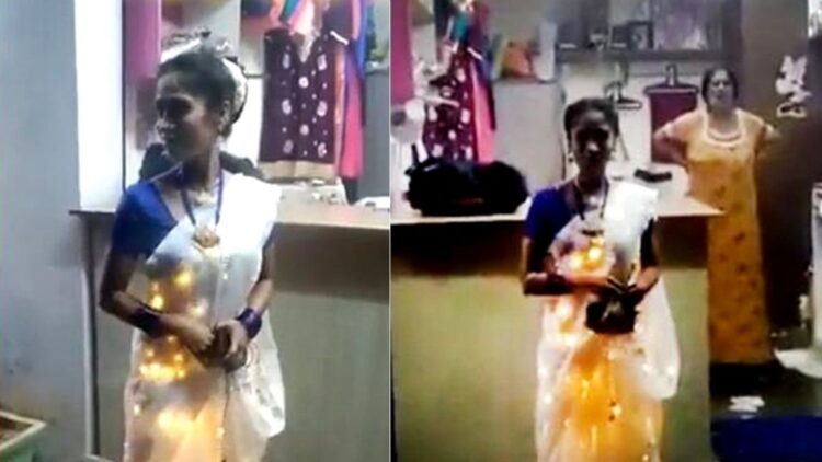 എന്നാല് ഇപ്പോള് എല്ഇഡി ലൈറ്റുകള് കൊണ്ടുള്ള സാരി ധരിച്ച ഒരു സ്ത്രീയുടെ വീഡിയോ ആണ് സോഷ്യല് മീഡിയയില് വൈറലാകുന്നത്. എല്ഇഡി ലൈറ്റുകള് കൊണ്ട് അലംകൃതമായ വെള്ള നിറത്തിലുള്ള സാരിയാണ് അവര് ധരിച്ചിരിക്കുന്നത്. റോയല് ബ്ലൂ ബ്ലൗസും അതിന് ചേരുന്ന നീല നിറത്തിലുള്ള ആഭരണങ്ങളുമാണ് അവര് സാരിയ്ക്കൊപ്പം ധരിച്ചിരിക്കുന്നത്. 2020 ലാണ് ഈ വീഡിയോ ക്ലിപ്പ് ആദ്യമായി പുറത്തുവന്നത്. എന്നാല് ഇപ്പോള് വീഡിയോ വീണ്ടും വൈറലായി മാറുകയായിരുന്നു.