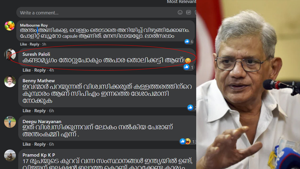 എന്നാൽ കേന്ദ്രം നികുതി കുറച്ചിട്ടും സംസ്ഥാനം നികുതി കുറയ്ക്കില്ലെന്ന നിലപാടിനെതിരെയുളള ജനരോഷം കമന്റുകളിൽ നിറയുകയാണ്. പിണറായി സർക്കാരിനെ രൂക്ഷമായി വിമർശിക്കുന്നതാണ് കമന്റുകളിൽ അധികവും. അന്തം അണികളെ, വെള്ളം തൊടാതെ അറിയിപ്പ് വിഴുങ്ങിക്കോണം. പോളിറ്റ് ബ്യൂറോ ക്യാപ്സൂൾ ആണിത്. മനസിലായല്ലോ. ലാൽസലാം എന്നാണ് ഒരു കമന്റ്. കണ്ടാമൃഗം തോറ്റുപോകും അപാര തൊലിക്കട്ടി ആണ്! എന്ന് മറ്റൊരാൾ കുറിച്ചു.