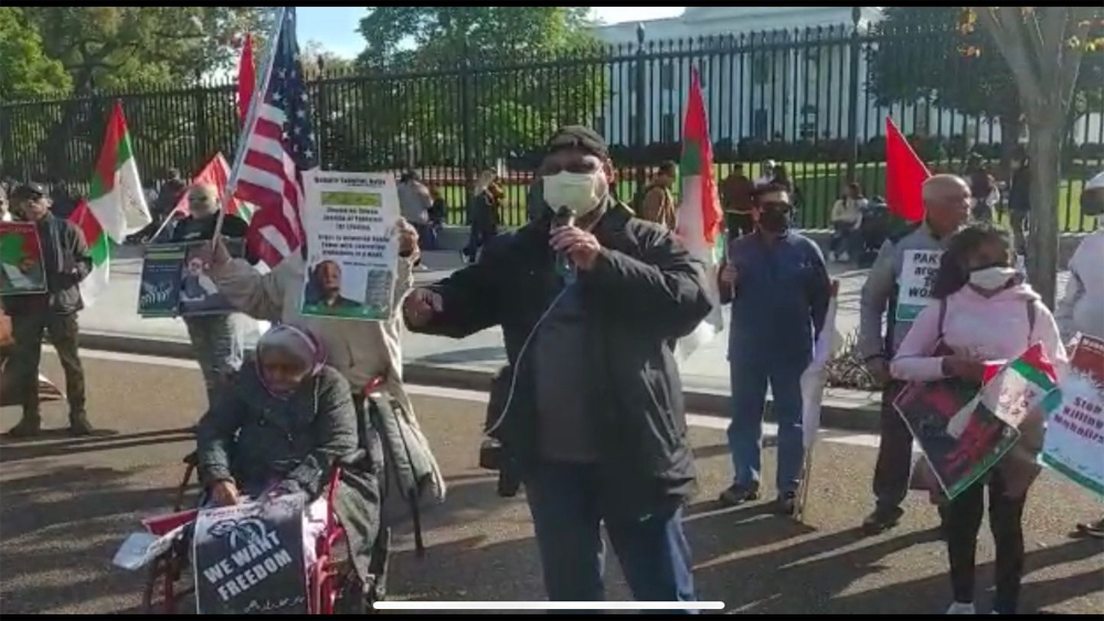 വാഷിംഗ്ടൺ: പാകിസ്താന്റെ മനുഷ്യാവകാശ ലംഘനങ്ങൾക്കെതിരെ പ്രതിഷേധം വൈറ്റ് ഹൗസിന് മുന്നിലും . പാക് – സിന്ധ് വംശജരാണ് തങ്ങൾക്ക് പ്രത്യേക രാജ്യവും ഭരണ സംവി ധാനവും വേണമെന്ന ആവശ്യവുമായി പ്രതിഷേധം നടത്തുന്നത്. സിന്ധിലെ മൊജാഹി റുകളുടെ രക്ഷയ്ക്കായി അന്താരാഷ്ട്ര കോടതി ഇടപെടണമെന്നും പ്രതിഷേധക്കാർ പറയുന്നു.