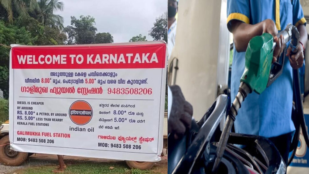 കേരള പമ്പിനേക്കാൾ പെട്രോളിനും ഡീസലിനും വിലക്കുറവ്; വെൽകം ടു കർണാടക; കർണാടകയിലെ പെട്രോൾ പമ്പിന്റെ പരസ്യ പോസ്റ്റർ വൈറലാകുന്നു