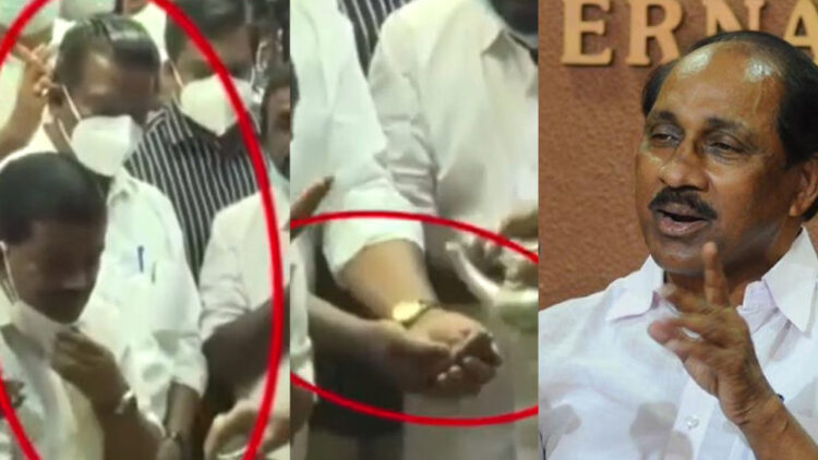 പുതിയ മേൽശാന്തിയുടെ അവരോധിക്കൽ ചടങ്ങ് നടന്ന ദീർഘ സമയം മന്ത്രിയും അനുയായികളും ക്ഷേത്ര സന്നിധിയിലുണ്ടായിരുന്നു. എന്നിട്ടും വിഗ്രഹത്തെ തൊഴാൻ പോലും മന്ത്രി തയ്യാറായില്ലെന്ന വിമർശനമാണ് ഉയരുന്നത്. തീർത്ഥ ജലം കൈകളിൽ പുരട്ടി ഒഴിവാക്കുന്നതും വീഡിയോയിൽ കാണാം. ഇത് ഭക്തർക്കിടയിൽ വലിയ വിമർശനങ്ങൾക്ക് വഴിയൊരുക്കിയിരുന്നു.