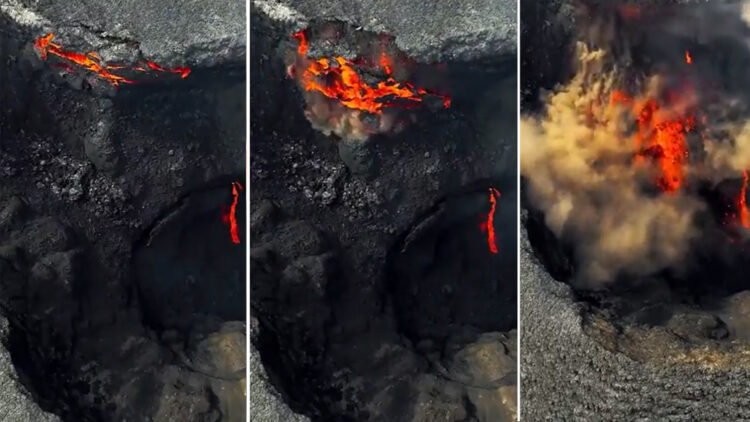 ഡ്രോൺ ഉപയോഗിച്ച് പകർത്തിയ വീഡിയോ ഫോട്ടോഗ്രാഫറായ ഹെർദിസ് ക്രിസ്റ്റ്ലീഫ്സണാണ് ട്വിറ്ററിൽ പങ്കുവെച്ചിരിക്കുന്നത്. കഴിഞ്ഞ മാർച്ച് 19നാണ് ഫാഗ്രഡൽസ്ഫിയാൽ അഗ്നിപർവ്വതം പൊട്ടിത്തെറിക്കുന്നത്. എന്നാൽ ഇതിന്റെ ചിത്രങ്ങളും വീഡിയോയും ഹെർദിസ് ഇപ്പോഴാണ് പുറത്തുവിട്ടത്. ഐസ് ലാൻഡ് തലസ്ഥാനമായ റെയ്ജാവിക്കിൽ നിന്ന് 40 കിലോമീറ്റർ അകലെയാണ് ഈ അഗ്നിപർവ്വതം.