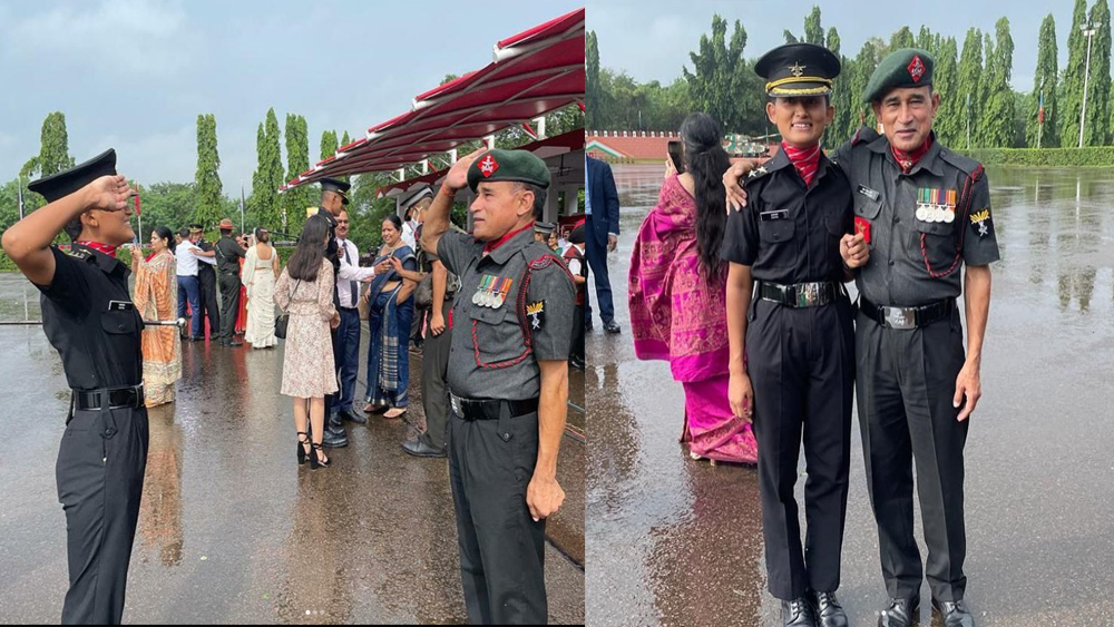കഴിഞ്ഞ 20നാണ് സേനയിലെ കോർ ഓഫ് ആർമി എയർ ഡിഫൻസിൽ ഓഫീസറായി ഏകതാ നേഗി ചുമതലയേറ്റത്. അസം റൈഫിൾസ് കുടുംബത്തിന് അഭിമാനകരമായ നിമിഷമാണിതെന്ന് ചൂണ്ടിക്കാട്ടി ഇരുവരും ഒരുമിച്ചുള്ള ചിത്രങ്ങളും സേനയുടെ സമൂഹമാദ്ധ്യമ പേജുകളിൽ പങ്കുവച്ചിട്ടുണ്ട്. പുതിയതായി ചുമതലയേറ്റ മകളെ അച്ഛൻ സല്യൂട്ട് ചെയ്യുന്ന ചിത്രങ്ങളും ഇവർ പങ്കുവച്ചിട്ടുണ്ട്.