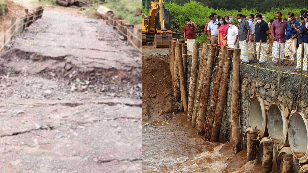 പുഴയിലെ വെള്ളം കടന്നുപോകാൻ രണ്ട് പാളികളായി 24 പൈപ്പുകൾ സ്ഥാപിച്ചിരുന്നു. താഴെ ഏഴും മുകളിൽ അഞ്ചുമായി 12 വെന്റുകളും ഒരുക്കി. ഇതിന് രണ്ട് വശത്തും ഉരുക്കുവലയ്ക്കകത്ത് കല്ലുകൾ അടുക്കിയാണ് ഗാബിയോൺ സ്ട്രക്ചർ തയ്യാറാക്കിയത്.