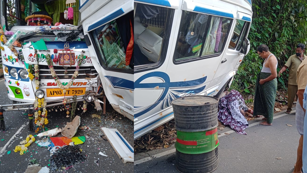ആദി നാരായണൻ, ഈശ്വരപ്പ എന്നിവരാണ് മരിച്ചത്. നാട്ടുകാരുടെയും പോലീസിന്റേയും നേതൃത്വത്തിലാണ് രക്ഷാപ്രവർത്തനം നടന്നത്. പെരുവന്താനം അമലഗിരിയിൽ വെച്ചാണ് അപകടമുണ്ടായത്. ഭക്തരുടെ വാഹനം അവരുടെ തന്നെ മറ്റൊരു വാഹനത്തിൽ ഇടിക്കുകയായിരുന്നു.