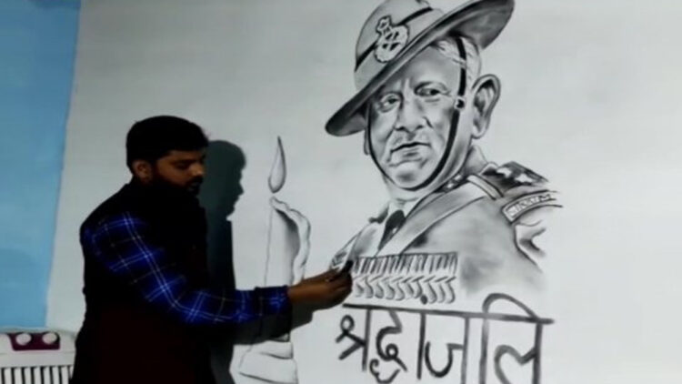 ഉത്തർപ്രദേശിലെ അംറോഹയിൽ നിന്നുള്ള സോയബ് ഖാൻ എന്ന കലാകാരൻ സംയുക്ത സൈനിക മേധാവി ബിപിൻ റാവത്തിന് സമർപ്പിച്ച ഛായാചിത്രം ആദരവോടെയാണ് എല്ലാവരും കാണുന്നത്.എട്ടടിയോളം വലുപ്പത്തിൽ കരി ഉപയോഗിച്ച് വരച്ച ചിത്രം, ഭാരതീയരെ ധീര സൈനികന്റെ ജ്വലിക്കുന്ന ഓർമ്മകളിലേക്ക് കൊണ്ടുപോകുന്നു.
