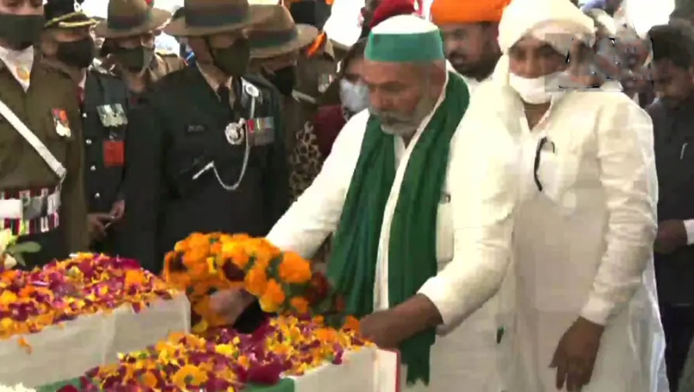 തുടര്ന്ന് പോലീസും സുരക്ഷാസേനയും എത്തിയാണ് ടികായത്തിന്റെ പൊതുദർശനം നടക്കുന്ന സ്ഥലത്തെത്തിച്ചത് .സൈനിക മേധാവിക്കും ഭാര്യയ്ക്കും രാകേഷ് ടിക്കായത്ത് അന്ത്യാഞ്ജലി അര്പ്പിച്ചു.