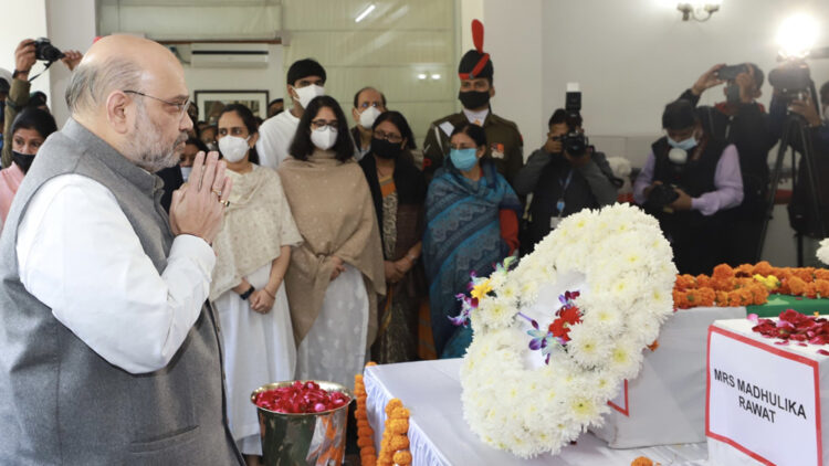 അമിത് ഷായെക്കൂടാതെ നിരവധി കേന്ദ്രമന്ത്രിമാരും സുപ്രീംകോടതി ചീഫ് ജസ്റ്റീസ് ഉൾപ്പെടെയുളളവരും ജനറൽ ബിപിൻ റാവത്തിന് അന്ത്യോപചാരം അർപ്പിക്കാനെത്തിയിരുന്നു. ബ്രാർ സ്‌ക്വയർ ശ്മശാനത്തിൽ സമ്പൂർണ സൈനിക ബഹുമതികളോടെയായിരുന്നു ഇരുവരുടെയും സംസ്‌കാരം.