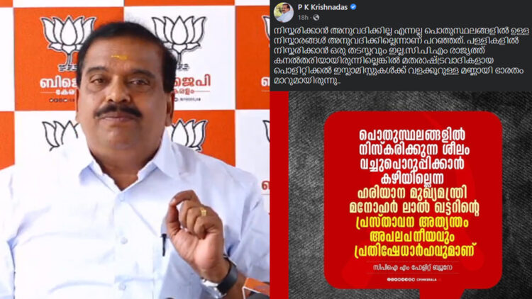 നിസ്കരിക്കാൻ അനുവദിക്കില്ല എന്നല്ല, പൊതുസ്ഥലങ്ങളിൽ ഉള്ള നിസ്കാരങ്ങൾ അനുവദിക്കില്ലെന്നാണ് പറഞ്ഞതെന്ന് പി.കെ കൃഷ്ണദാസ് ചൂണ്ടിക്കാട്ടി. ഹരിയാനയിൽ മുസ്ലീം വിശ്വാസികൾക്ക് പള്ളികളിൽ നിസ്കരിക്കാൻ ഒരു തടസ്സവും ഇല്ലെന്നും അദ്ദേഹം പറഞ്ഞു.