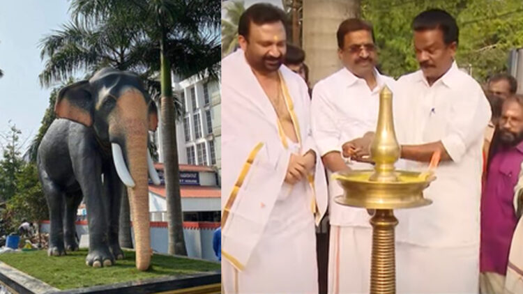 തൃശ്ശൂർ: അരനൂറ്റാണ്ടിലേറെ ഗുരുവായൂർ കണ്ണന്റെ തങ്കത്തിടമ്പ് എഴുന്നള്ളിച്ച ഗജരത്നം ഗുരുവായൂർ പത്മനാഭന്റെ പ്രതിമ ദേവസ്വം മന്ത്രി കെ രാധാകൃഷ്ണൻ അനാച്ഛാദനം ചെയ്തു. ക്ഷേത്രാങ്കണത്തിലെ ശ്രീവത്സം ഗസ്റ്റ് ഹൗസിനു മുന്നിൽ ഗുരുവായൂർ കേശവന്റെ പ്രതിമക്ക് എതിർവശത്തായാണ് പത്മനാഭന്റെ പ്രതിമ സ്ഥാപിച്ചിരിക്കുന്നത്.