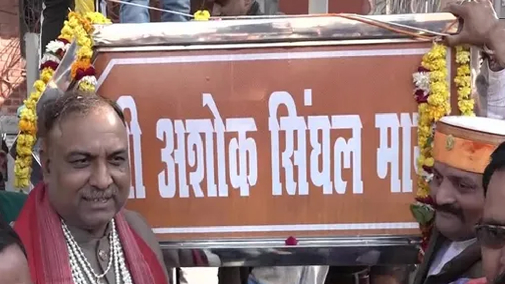 ലക്നൗ : ആഗ്രയിലെ റോഡിന് വിശ്വഹിന്ദു പരിഷത് നേതാവ് അശോക് സിംഗ്ഹലിന്റെ പേര് നൽകി ബിജെപി. ഗാട്ടിയ അസം ഖാൻ മാർഗ് റോഡിനാണ് നേതാവിന്റെ പേര് നൽകിയത്. അശോക് സിംഗ്ഹാലിനോടുള്ള ആദരസൂചകമായാണ് റോഡിന്റെ പേര് മാറ്റിയതെന്ന് ഭരണകൂടം അറിയിച്ചു.