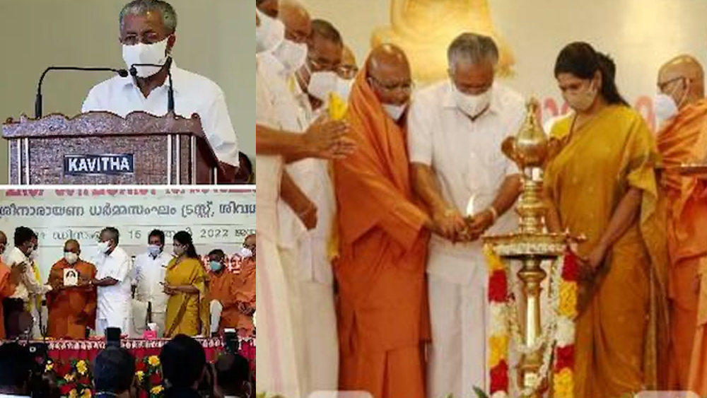 സർക്കാർ പ്രവർത്തിക്കുന്നത് ഗുരുദേവന്റെ സന്ദേശങ്ങളിലൂന്നിയാണ്. ഏതു നിമിഷവും വർഗീയ ഫാസിസം പിടികൂടുമെന്ന ആപത് ശങ്ക എല്ലാവരെയും ബാധിക്കുന്ന കാലമാണിത്. ഗുരുവിനെ ഏതെങ്കിലും വിഭാഗത്തിന്റെ പ്രതിനിധിയായി അവതരിപ്പിക്കാൻ ചിലർ ശ്രമിക്കുന്നുണ്ട്. ഇവിടെയാണ് ഗുരുവിന്റെ മതനിരപേക്ഷ ചിന്തകൾ പ്രസക്തമാകുന്നതെന്നും മുഖ്യമന്ത്രി പറഞ്ഞു. ചടങ്ങിൽ കനിമൊഴി എംപിയും പങ്കെടുത്തു.
