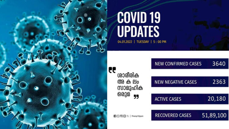തിരുവനന്തപുരം: സംസ്ഥാനത്ത് ഇന്ന് 3640 പേർക്ക് കൊറോണ സ്ഥിരീകരിച്ചു. എറണാകുളം 641, തിരുവനന്തപുരം 599, കോഴിക്കോട് 403, കോട്ടയം 352, തൃശൂർ 330, കണ്ണൂർ 268, കൊല്ലം 201, പത്തനംതിട്ട 165, മലപ്പുറം 157, ആലപ്പുഴ 147, ഇടുക്കി 125, പാലക്കാട് 124, വയനാട് 79, കാസർഗോഡ് 49 എന്നിങ്ങനേയാണ് ജില്ലകളിൽ ഇന്ന് രോഗ ബാധ സ്ഥിരീകരിച്ചത്. കഴിഞ്ഞ 24 മണിക്കൂറിനിടെ 71,120 സാമ്പിളുകളാണ് പരിശോധിച്ചത്.