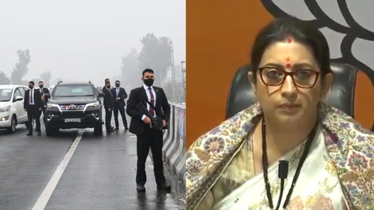 പഞ്ചാബിലെ ക്രമസമാധാന നില ഏത് നിലയിലാണെന്നതിന്റെ തെളിവാണിതെന്നും സ്മൃതി ഇറാനി പറഞ്ഞു. പ്രധാനമന്ത്രിക്ക് സുരക്ഷ നൽകാൻ കഴിവില്ലെന്നാണ് പഞ്ചാബ് ഡിജിപി പറയുന്നതെന്നും കോൺഗ്രസ് ആണ് ഇതിന് മറുപടി നൽകേണ്ടതെന്നും അവർ പറഞ്ഞു.