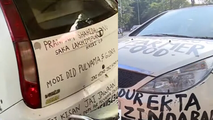 വാഹനത്തിൽ നിന്നും നാല് ബാഗുകളും പഴകിയ വസ്ത്രങ്ങളും കണ്ടെത്തിയിട്ടുണ്ട്. റോയൽ ക്ലബ്ബിൽ നിന്നും മദ്യപിച്ച ശേഷം ഇയാൾ അവിടെ ബഹളം വെച്ചുവെന്നും വാഹനം ഉപേക്ഷിച്ച് കടന്നുകളഞ്ഞുവെന്നുമാണ് വിവരം. കാർഷിക നിയമത്തിനെതിരെ പ്രതിഷേധിച്ചവരെ അനുകൂലിച്ചുള്ള വാചകങ്ങളാണ് കാറിൽ എഴുതിയിരിക്കുന്നത്.