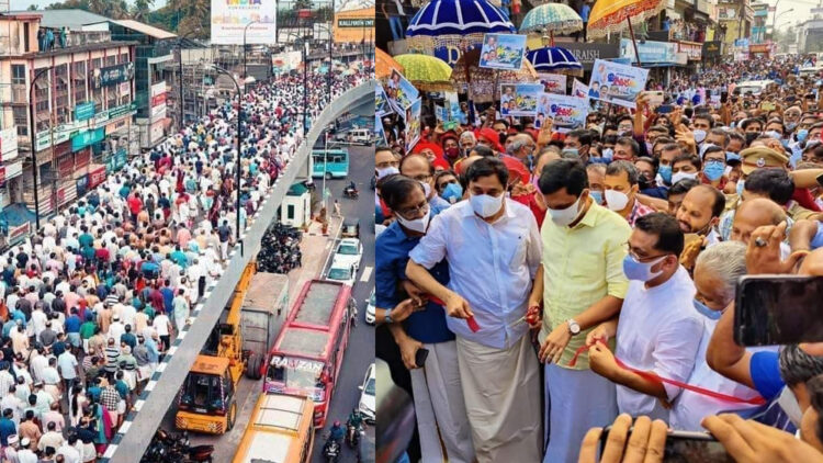 മലപ്പുറം: എടപ്പാൾ മേൽപ്പാലം ഉദ്ഘാടനത്തിൽ പങ്കെടുത്ത ഏഴ് പേർക്ക് കൊറോണ സ്ഥിരീകരിച്ചു. കഴിഞ്ഞ ശനിയാഴ്ചയായിരുന്നു പാലത്തിന്റെ ഉദ്ഘാടനം. കൊറോണ നിയന്ത്രണങ്ങൾ കാറ്റിൽപറത്തി വൻ ജനക്കൂട്ടമായിരുന്നു പാലം ഉദ്ഘാടനത്തിന് എത്തിയത്. മാദ്ധ്യമങ്ങളിലും സോഷ്യൽ മീഡിയയിലും ഇത് വലിയ വിമർശനങ്ങൾക്കും ചർച്ചകൾക്കും വഴിവെയ്ക്കുകയും ചെയ്തിരുന്നു.