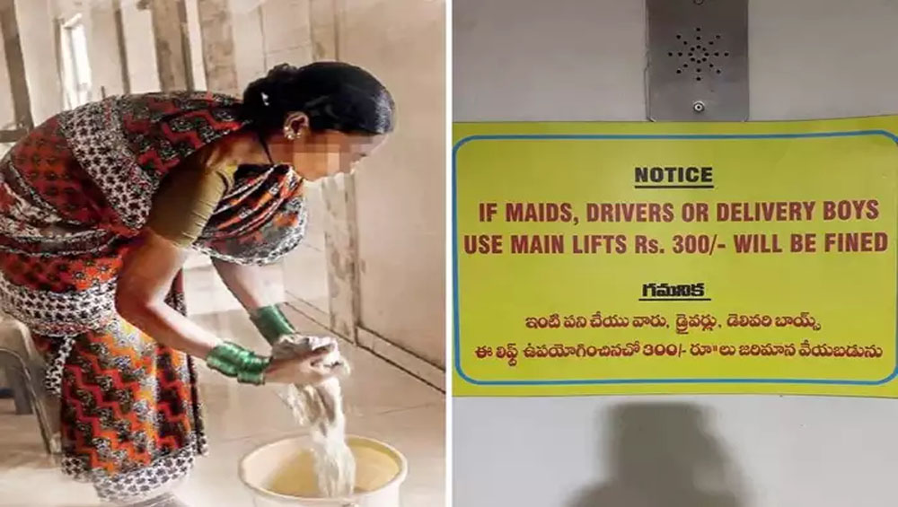 നിറത്തിന്റെയും ജാതിയുടെയും മതത്തിന്റെയും വർഗത്തിന്റെയും അടിസ്ഥാനത്തിൽ മാത്രമല്ല പ്രൊഫഷന്റെ അടിസ്ഥാനത്തിലും വിവേചനം ഉണ്ടാകുന്നു . ഇതിന്റെ ഏറ്റവും ഒടുവിലത്തെ ഉദാഹരണമാണ് ഈ ചിത്രം. ഹൈദരാബാദിലെ ഒരു ഹൗസിംഗ് സൊസൈറ്റിയിലെ ലിഫ്റ്റിന് സമീപത്ത് സ്ഥാപിച്ചിരിക്കുന്ന ബോർഡാണ് സമൂഹമാദ്ധ്യമങ്ങളിൽ ശ്രദ്ധ നേടുന്നത്