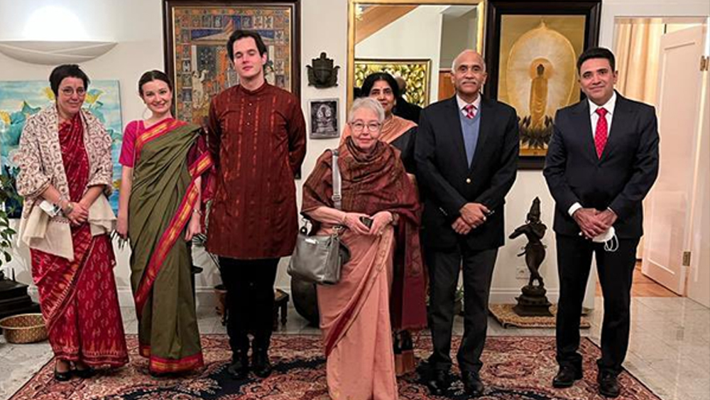 #AmbHarishParvathaneni hosted Dr Anita Bose Pfaff for dinner at #IndiaHouse on the eve of 125th Birth Anniversary of Netaji Subhas Chandra Bose #ParakramDiwas. Dr Anita Bose Pfaff, an Overseas Citizen of #India signed off the guest book #JaiHind pic.twitter.com/LolkGn3xoG