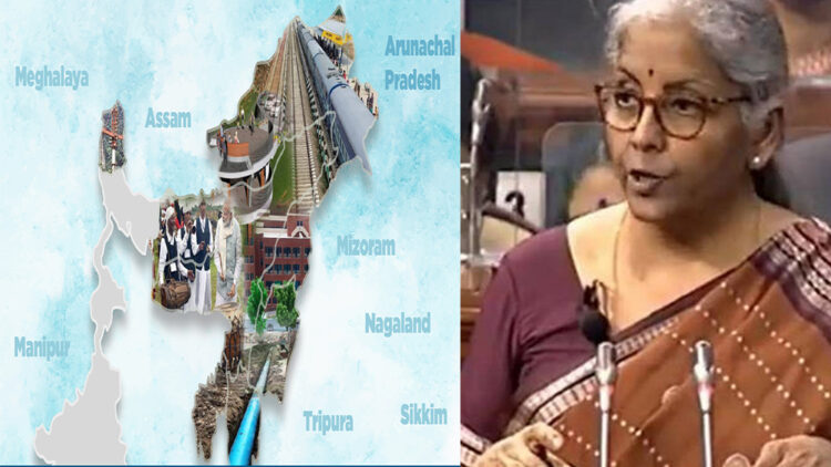 വടക്കുകിഴക്കൻ മേഖലയുടെ ഭൂമിശാസ്ത്ര പ്രത്യേകതകളും കാലാവസ്ഥയും കണക്കിലെടു ത്തായിരിക്കും പദ്ധതികൾ. ആരോഗ്യമേഖലയിലെ വികസനത്തിനും ഊന്നൽ കൊടുക്കേണ്ട തുണ്ടെന്നും സ്ത്രീകളുടേയും കുട്ടികളുടേയും ക്ഷേമം ഉറപ്പാക്കുമെന്നും നിർമ്മല സീതാ രാമൻ പറഞ്ഞു. നിലവിലെ കേന്ദ്ര-സംസ്ഥാന പദ്ധതികൾക്ക് കൂടുതൽ ശക്തിപകരാനാണ് തുക നീക്കിവച്ചിട്ടുള്ളതെന്നും ധനമന്ത്രി പറഞ്ഞു.