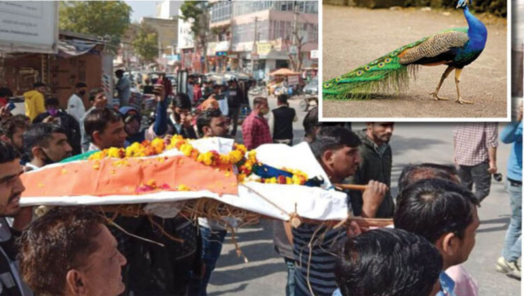 രക്തസാക്ഷിയെപ്പോലെ അന്തിമ യാത്രയയപ്പ് നൽകിയ ദേശീയ പക്ഷിയ്ക്ക് വേണ്ടി ദേശീയഗാനത്തിന്റെ അകമ്പടിയുമുണ്ടായിരുന്നു. മണ്ഡാവ മോഡ് പ്രദേശത്ത് വച്ചാണ് മയിൽ വൈദ്യുത കമ്പിയിൽ ഇടിച്ച് വീണത് . ബോധരഹിതയായി നിലത്തുവീണ മയിലിനെ കുറിച്ച് നാട്ടുകാർ വെറ്ററിനറി ഡോക്ടർ അനിൽ ഖിച്ചാടിനെ അറിയിച്ചു. ഡോക്ടർ ഖിച്ചാട് സ്ഥലത്തെത്തി മയിലിന് ചികിത്സ ആരംഭിച്ചെങ്കിലും ചികിത്സയ്ക്കിടെ മയിൽ ചത്തു.