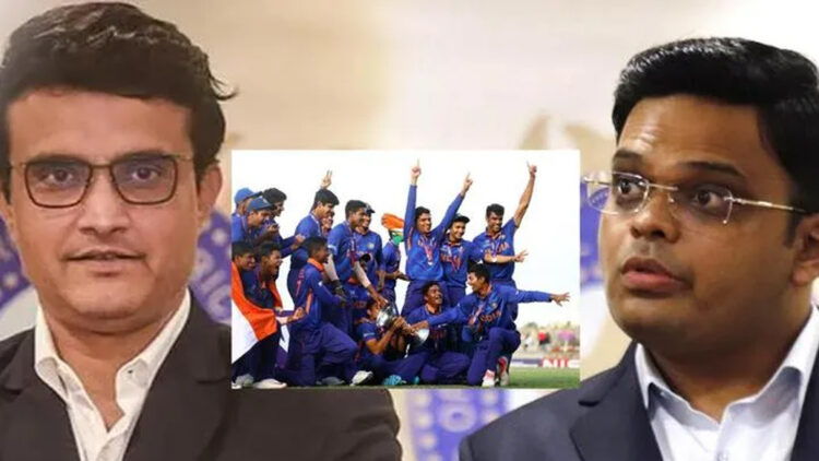 മുംബൈ: ക്രിക്കറ്റ് ചരിത്രത്തിന്റെ സുവർണതാളുകളിലേയ്‌ക്ക് കടന്നുകയറിയ ഇന്ത്യയുടെ മറ്റൊരു യുവനിരയ്‌ക്ക് അഭിനന്ദന പ്രവാഹമാണ് ലഭിക്കുന്നത്. അണ്ടർ-19 ലോകകപ്പ് ഫൈനലിൽ ഇംഗ്ലണ്ടിനെ തകർത്താണ് ഇന്ത്യയുടെ കൗമാരപ്പട അഞ്ചാം കിരീടത്തിൽ മുത്തമിട്ടത്. ബിസിസിഐ പ്രസിഡന്റ് സൗരവ് ഗാംഗുലിയും ടീമിന് അഭിനന്ദനങ്ങൾ നേർന്നു. ട്വിറ്ററിലൂടെയാണ് ഗാംഗുലി അഭിനന്ദനങ്ങൾ നേർന്നത്. കൂടാതെ, ബിസിസിഐ സെക്രട്ടറി ജയ് ഷായും ടീമിനെ അഭിനന്ദിച്ചു.