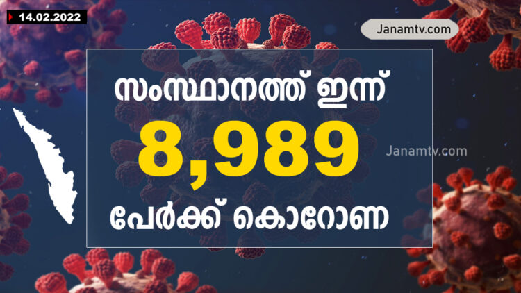 തിരുവനന്തപുരം: സംസ്ഥാനത്ത് ഇന്ന് 8989 പേർക്ക് കൊറോണ സ്ഥിരീകരിച്ചു. എറണാകുളം 1608, തിരുവനന്തപുരം 1240, കൊല്ലം 879, കോഴിക്കോട് 828, കോട്ടയം 743, തൃശൂർ 625, കണ്ണൂർ 562, ആലപ്പുഴ 558, മലപ്പുറം 443, ഇടുക്കി 412, പാലക്കാട് 386, പത്തനംതിട്ട 330, വയനാട് 205, കാസർഗോഡ് 170 എന്നിങ്ങനേയാണ് ജില്ലകളിൽ ഇന്ന് രോഗ ബാധ സ്ഥിരീകരിച്ചത്. കഴിഞ്ഞ 24 മണിക്കൂറിനിടെ 58,090 സാമ്പിളുകളാണ് പരിശോധിച്ചത്.