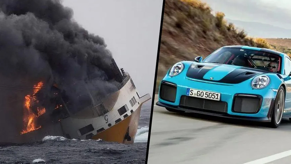 ബെർലിൻ: പുതുപുത്തൻ പോർഷെ കാറുകൾ കയറ്റി വന്ന കാർഗോയ്ക്ക് തീപിടിച്ചു. ജർമ്മനിയിലെ എംഡനിൽ നിന്നും യുണൈറ്റഡ് സ്റ്റേറ്റ്സിലെ റോഡ് ഐലൻഡിലേയ്ക്കുള്ള യാത്രാമദ്ധ്യേയാണ് കാർഗോയ്ക്ക് തീപിടിച്ചത്.